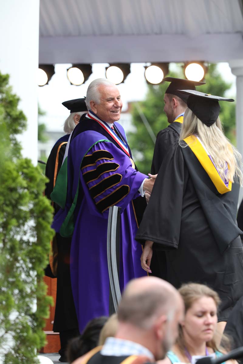 “Graduates, to truly find success in life and to frame it with significance, you must go from being an optimist to an 'actionist,'” said Qubein during his address to the Class of 2019. “The goodness in this world happens because somebody acts on it. We can’t just be dreamers. Ideas are a dime a dozen. We can have more ideas by noon every day than we can act on in a lifetime. We aren’t looking for ideas. We are looking for a way to carry out that plan. Be an actionist.”