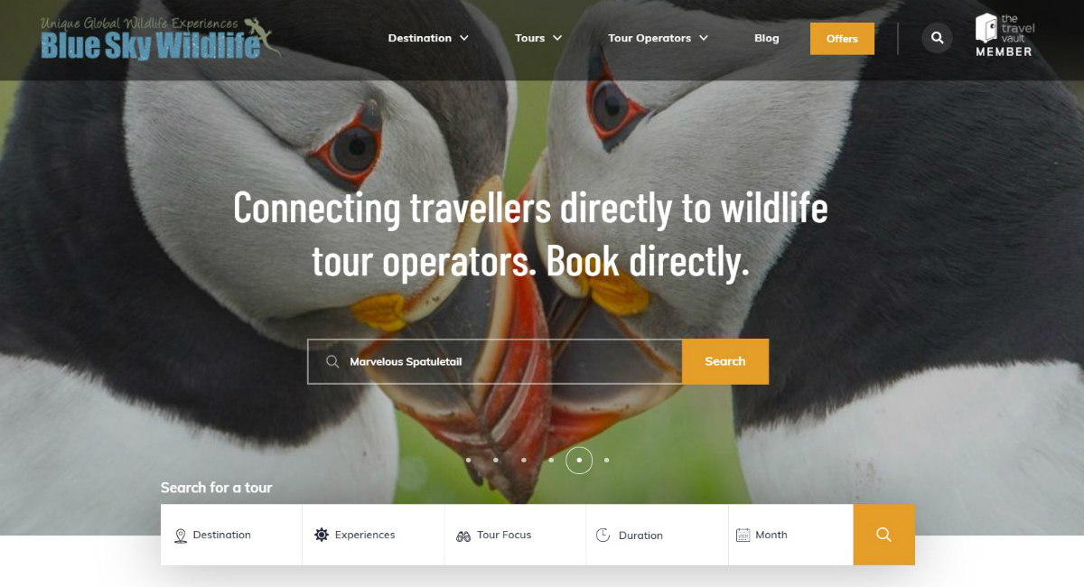 Chris Larsen, Director of Blue Sky Wildlife, comments: “The new site is very exciting for both the independent traveller who prefers to deal directly with the local wildlife specialists and for the wildlife tour operators who can showcase their remarkable tours to a global audience within one easy to use online portal.”