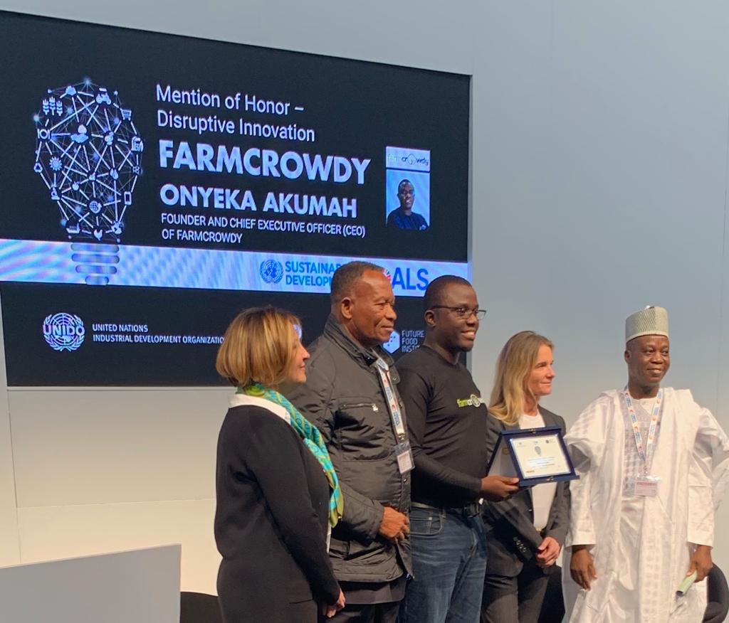 United Nations IDO (UNIDO) presents Farmcrowdy with “Disruptive Innovation in Agribusiness” International Award.