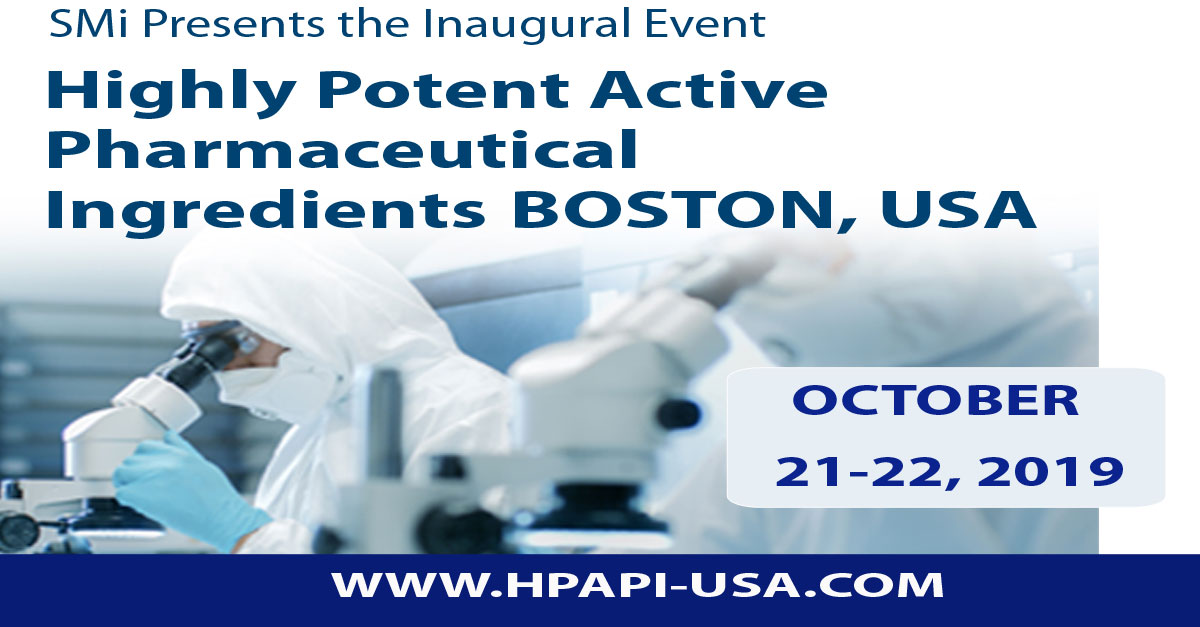 SMi’s inaugural Highly Potent Active Pharmaceutical Ingredients USA conference, convening in Boston on October 21st-22nd, will explore how the latest technologies can benefit HPAPI with artificial intelligence and machine learning to hasten risk assessment and validation. However, the underlying subject will be containment issues with a special focus on containment banding solutions and disaster management procedures. Session highlights for the 2019 conference include: