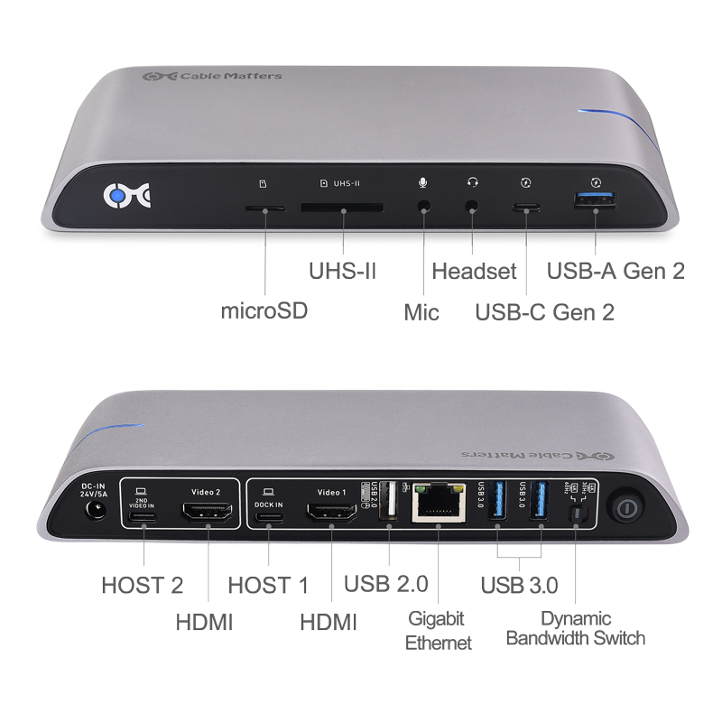 “USB-C is becoming the standard connectivity port on smartphones, tablets and computers. Our Cable Matters design and engineering teams closely track industry developments to provide cost-effective solutions for video, data and power delivery over USB-C. This unique Dual-Input USB-C Docking Station offers an affordable option, especially for MacBook Pro owners.” - Jeff Jiang, President of Cable Matters