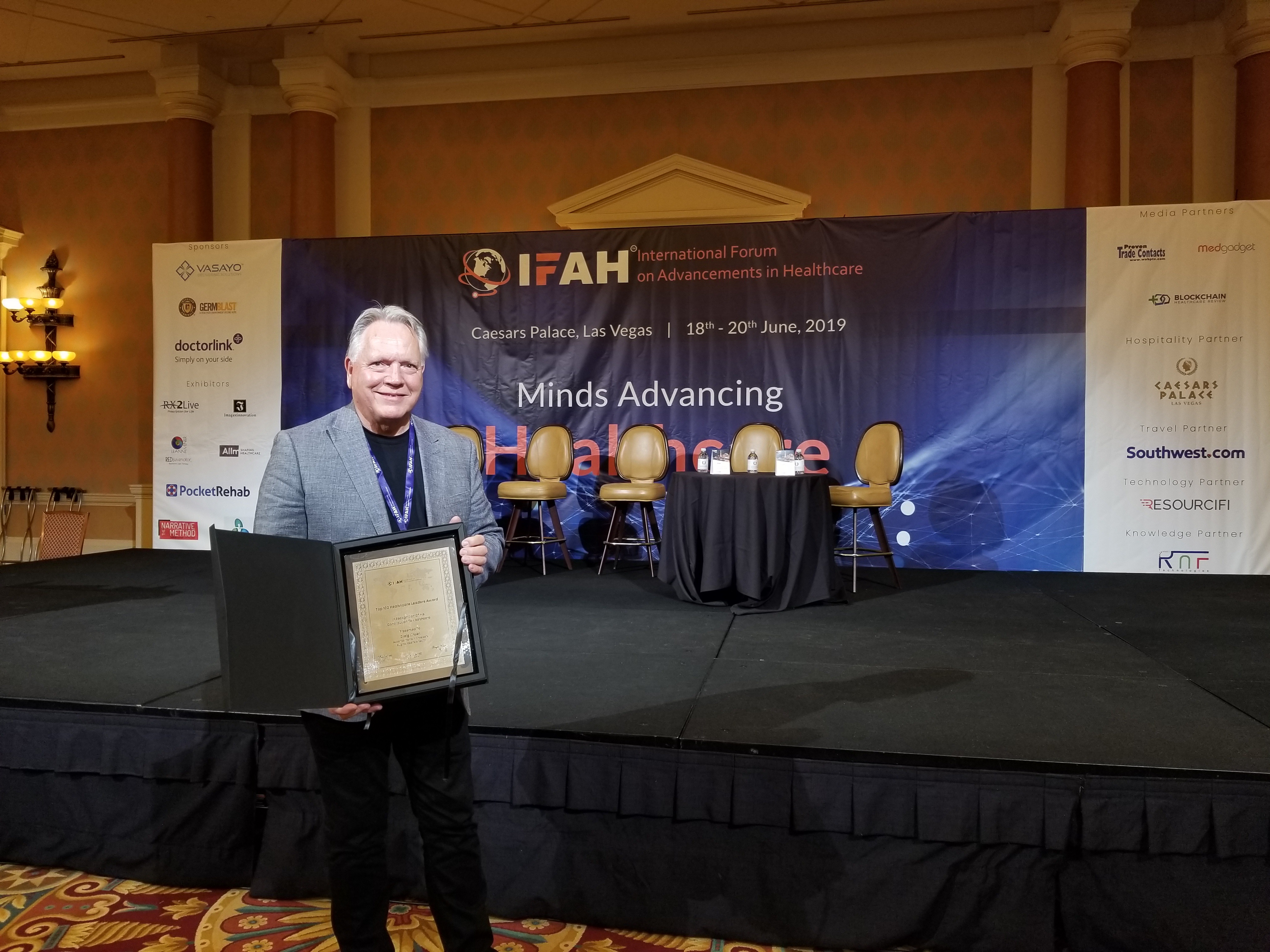 SAN DIEGO, CALIFORNIA, UNITED STATES, June 24, 2019 /EINPresswire.com/ -- Craig Linden, founder of Real Time Touch, was awarded the prestigious "Top 100 Healthcare Leaders Award" by the International Forum on Advancements in Healthcare(IFAH). The award was "In Recognition Of His Contribution to Healthcare" and for "Advancement in Physically Augmented Telehealth". Linden gave a presentation to the inaugural event for InterCon held at Caesars Palace. The Internet Conference ("InterCon"), is a gathering of some of the leading minds in the tech space to help drive the new global economy by sharing ideas, innovation and things that shape the future of technology.
