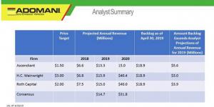 In a recent report, ADOMANI forecast sales of $31 million for 2020. Zack's Investment Research is now projecting that the stock price for ADOMANI Electric (Nasdaq: ADOM) will jump to $1.65 in the coming year - that's a more than four times the current stock price. Other analysts have rated the ADOMANI stock price even higher for 2020; Roth Capital projecting a price of $2.00 per share and H. C. Wainwright forecasting $3.00 per share.