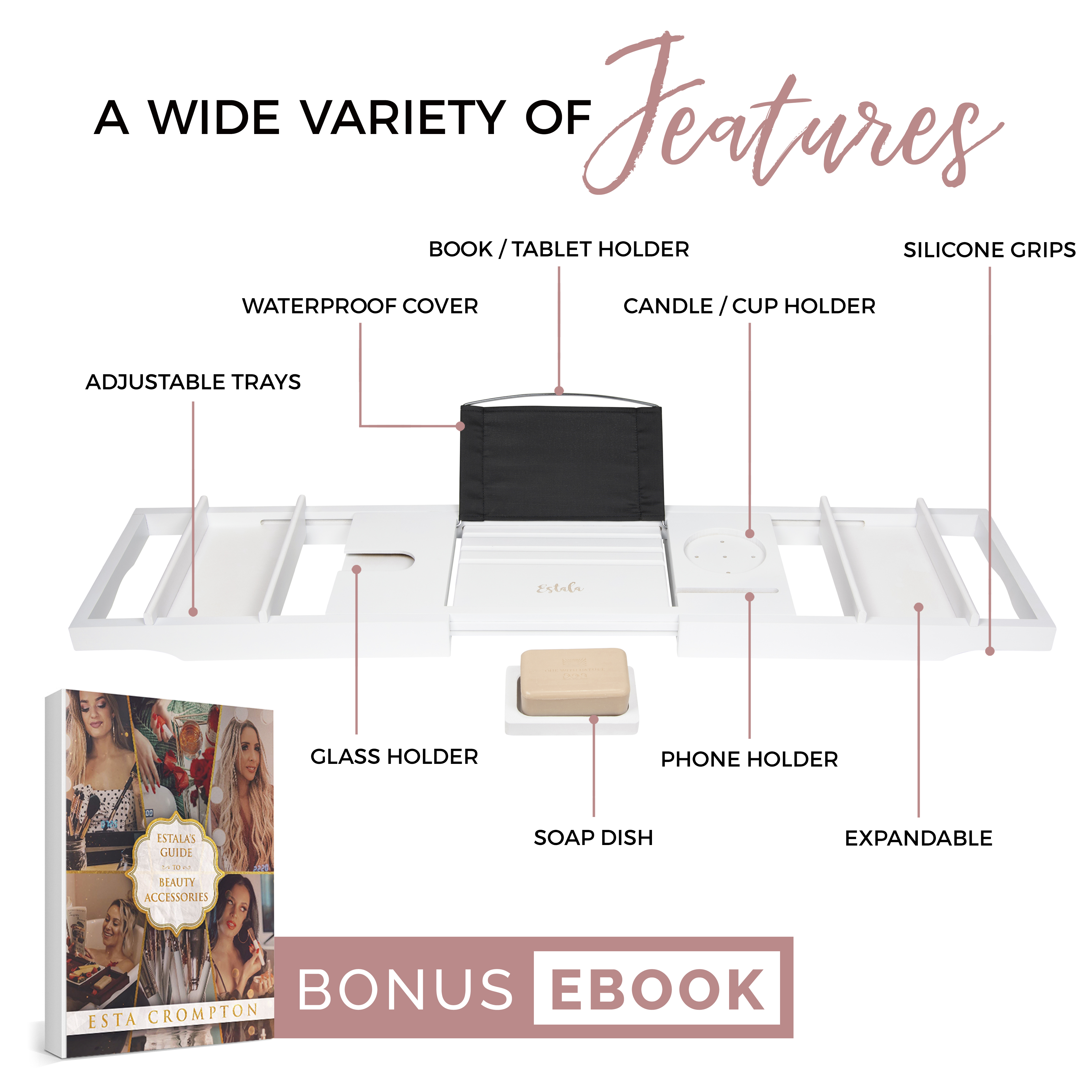 THE NEWEST ADDITION TO ESTALA SELF-CARE ACCESSORIES IS HERE --- LUXURY BAMBOO BATH CADDY TRAY IN WHITE