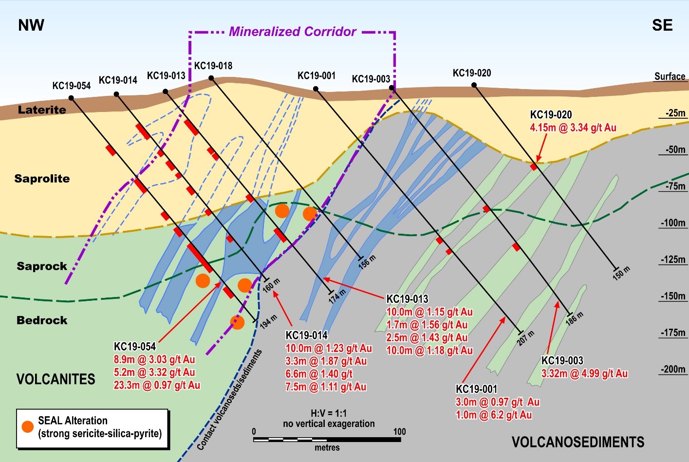 - KC19-054: 8.9m at 3.03 g/t Au