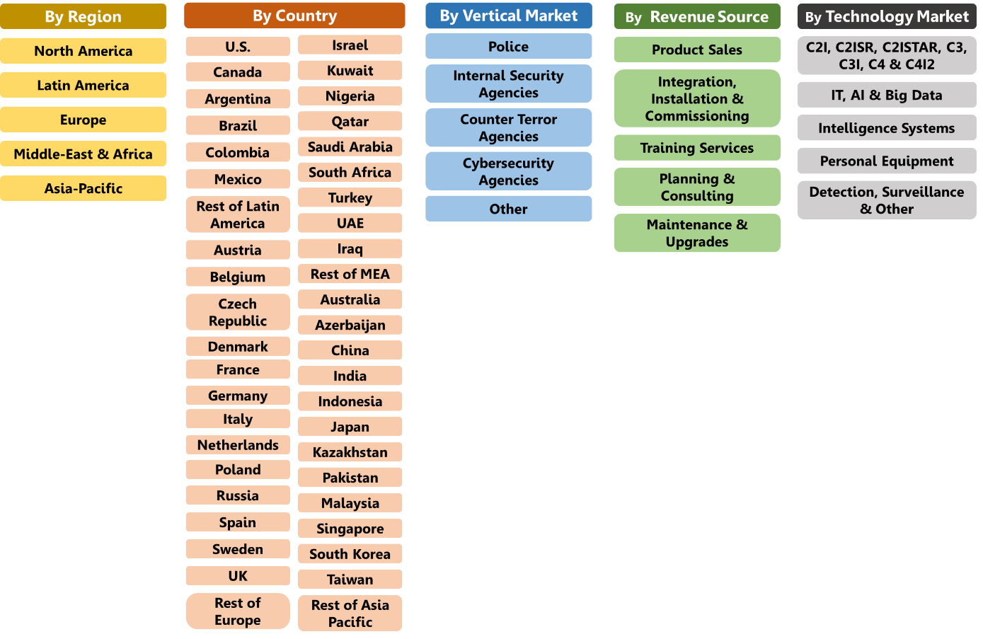 Key drivers of the Law Enforcement & Police Modernization market include new and maturing technologies, (e.g., Crime Analytics, Predictive Policing, NG911, Artificial Intelligence, Cybersecurity, Big Data, Data Analysis, Gunshot Detectors and Smart Video Surveillance), terror and crime, cybercrime and cyberterrorism, Trump’s administration’s Law Enforcement & Police Modernization and the Mexican Wall funding, Private sector security, growing internal security modernization markets in autocratic states (e.g., China, Turkey, Iran, Saudi Arabia), and critical infrastructure protection growing needs.