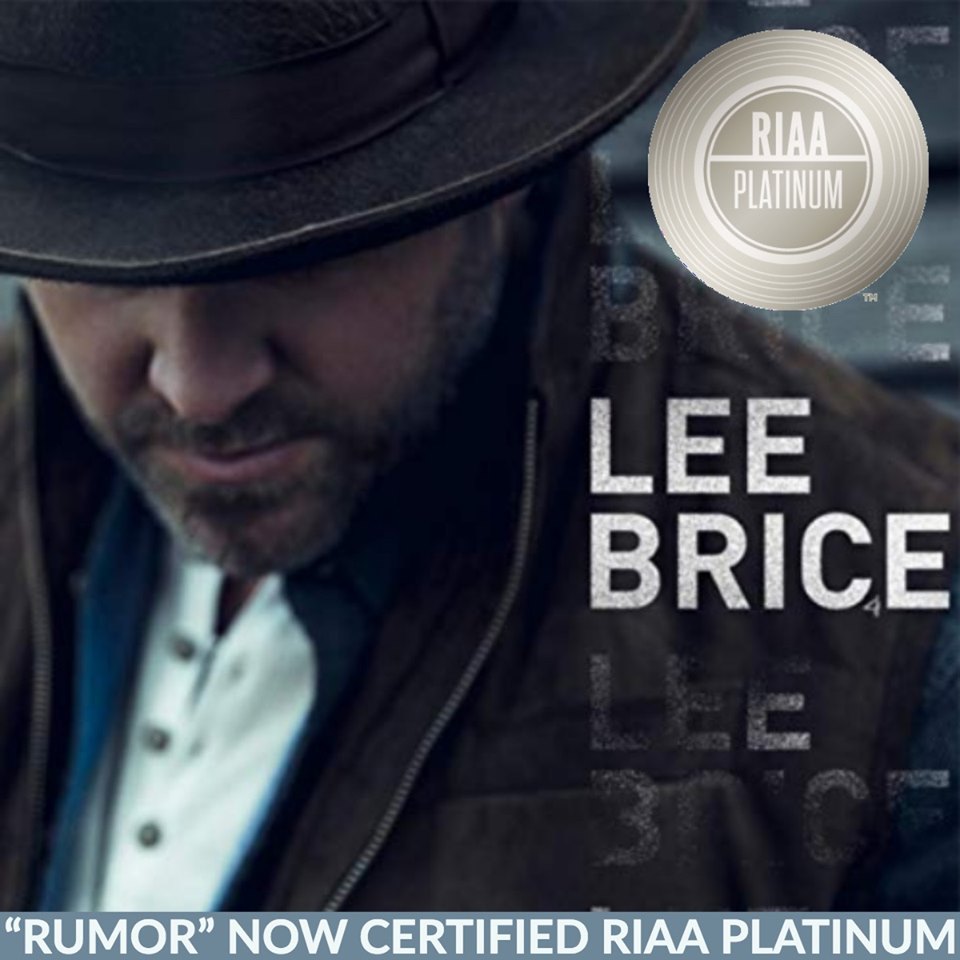 NASHVILLE, TENNESSEE, UNITED STATES, July 23, 2019 /EINPresswire.com/ -- A big congratulations goes out to Curb Records artist Lee Brice for his latest number 1 single, "Rumor" going platinum. This award is recognized by the single selling over 1 million units. “Rumor” has also racked up more than 200 million on-demand streams worldwide.Brice Tweets, 'Rumor' is platinum, y’all! I have to shout out our incredible fans who have supported 'Rumor' by tuning in, downloading, streaming and coming to see our shows." He then added "None of this happens without you"