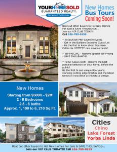 ROSEMEAD, CALIFORNIA, UNITED STATES, July 25, 2019 /EINPresswire.com/ -- Rudy Lira Kusuma, President, and CEO of Your Home Sold Guaranteed Realty, Inc. is proud to announce that they will be hosting a new homes tour in the coming months. The New Homes Tour will be a bus tour of new homes throughout Southern California. The New homes Bus Tours will be covering different cities, including Covina, La Puente, San Dimas, Baldwin Park, Chino, Lake Forest, and Yorba Linda.