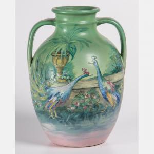 • A large 20th century Hudson Weller pottery vase painted by Hester Pillsbury, 13 ½ inches tall and signed on the bottom (est. $1,500-$2,500).