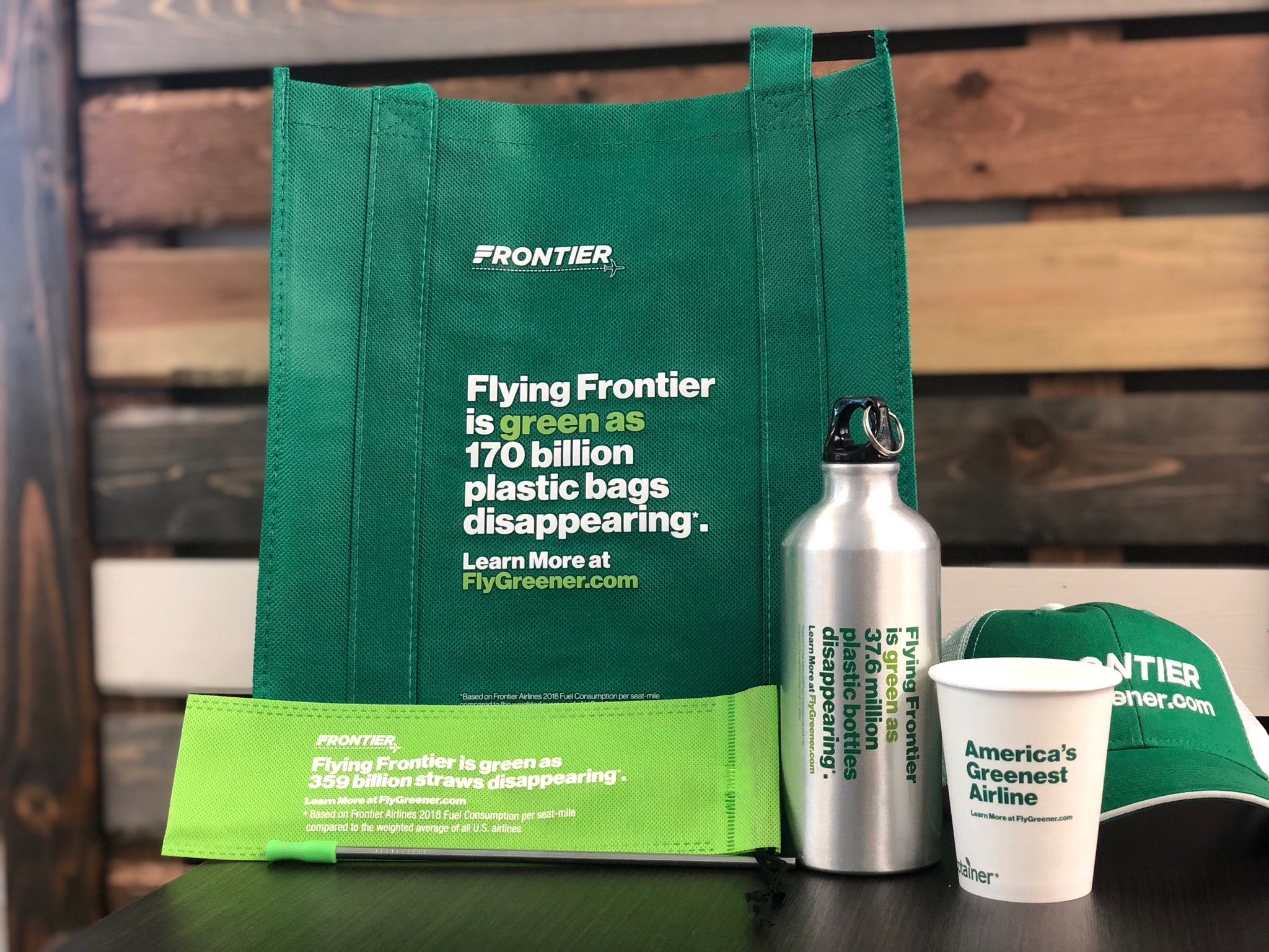 Today’s greenest flight is focused on sustainability on every level. Service items utilized include compostable cold cups, hot cups and napkins made from recycled materials and bamboo stir sticks. Customers will enjoy snacks utilizing eco-friendly packaging and cans, bottles, paper and plastic will be separated and recycled. To further lessen the environmental impact, Frontier is planting enough trees to offset the flight’s carbon footprint. In addition, all passengers onboard America’s Greenest Flight will receive “green inspired” gifts to encourage them think sustainably long after they have reached their destination.