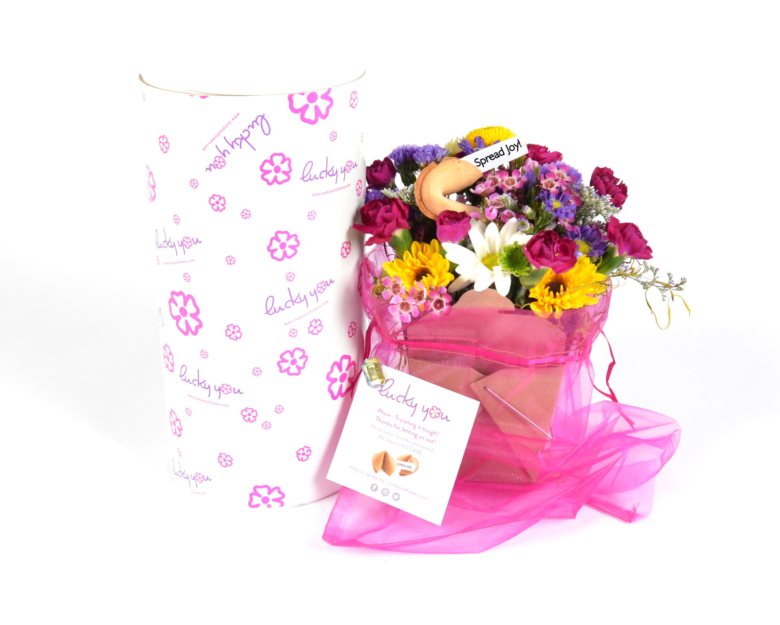HARTFORD, CT, Aug. 22, 2019 (GLOBE NEWSWIRE) -- Connecticut-based, female-owned Lucky You Flowers is a new direct mail floral company that is changing the flower arrangement game. With each handcrafted arrangement served up in a colorful takeout container, the unique presentation couldn’t be more delightful or delicious. Plus, every arrangement includes a fortune cookie with your custom message inside, for that personal touch that’s much sweeter than any old card. And at only $29.00 with free shipping nationwide, there’s no better gift for every day, not just the special days.