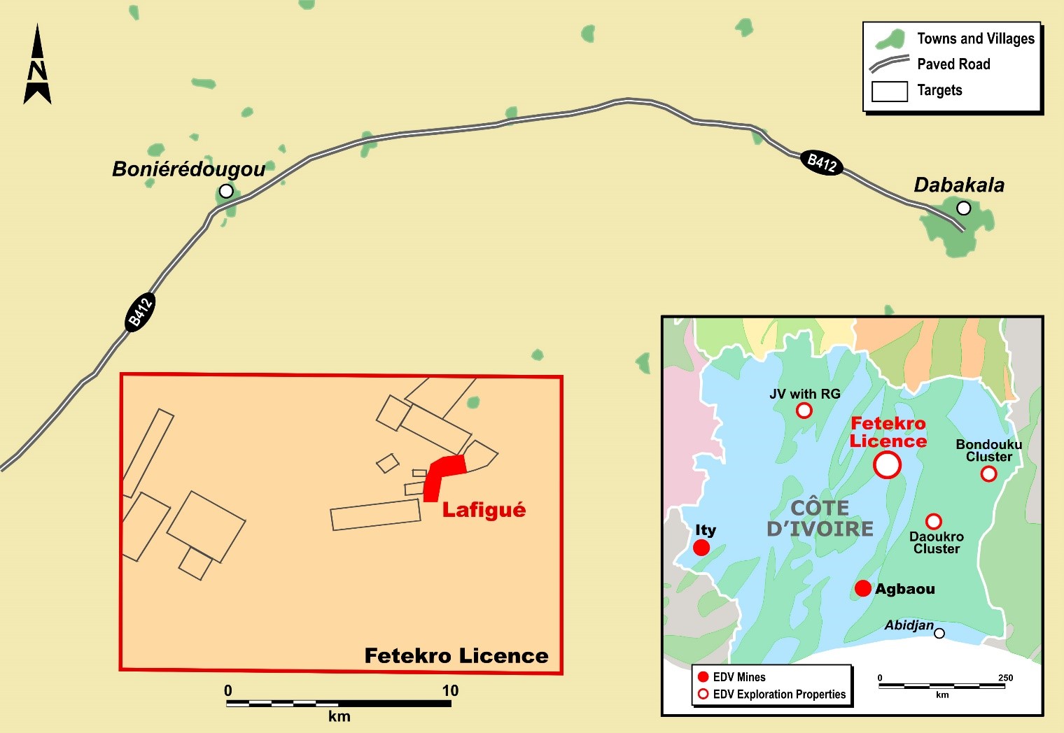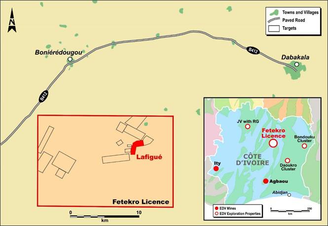Figure 1 - Simplified Map of the Fetekro Property Showing Lafigué