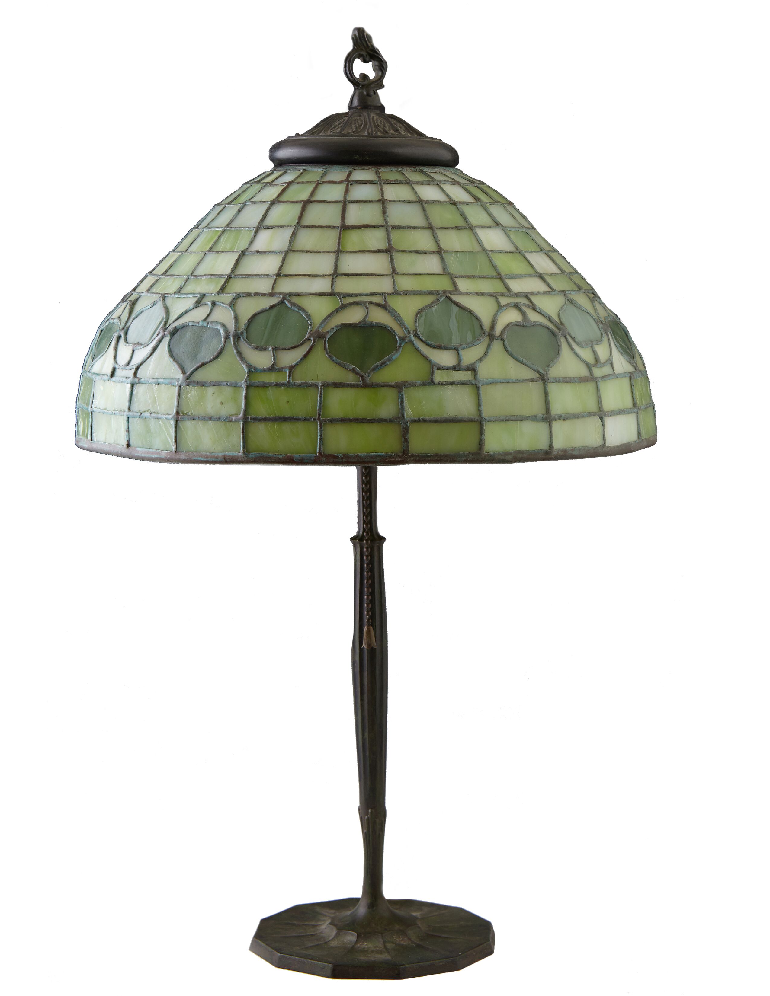 Early 20th century Tiffany Studios Art Nouveau leaded glass table lamp, 18 ½ inches tall, with an 18 ½ inch diameter shade (est. $5,000-$9,000).