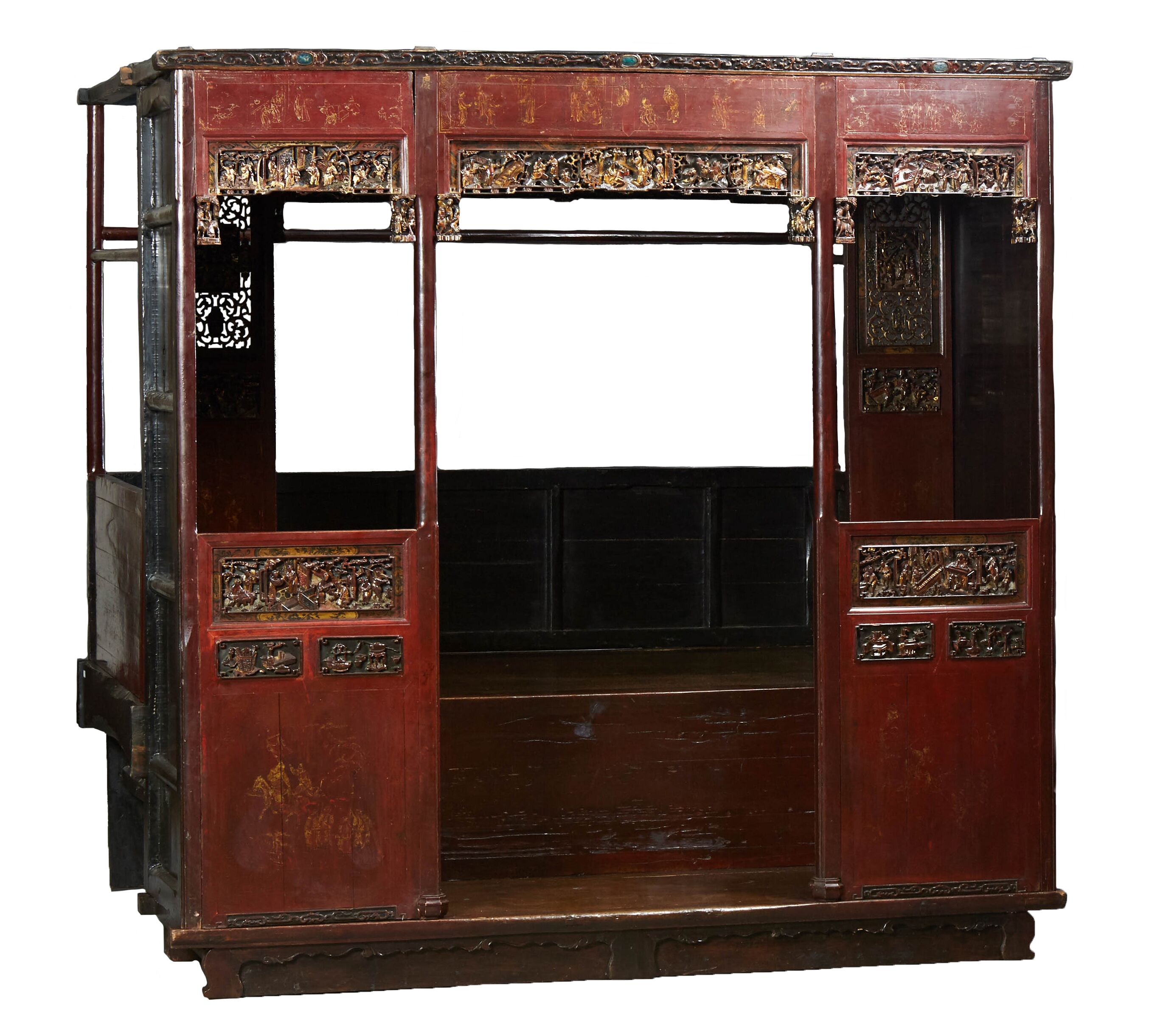 The early 20th century Tiffany Studios Art Nouveau leaded glass table lamp is 18 ½ inches tall, with an 18 ½ inch diameter shade; it’s expected to light up the room for $5,000-$9,000. The outstanding Chinese wedding canopy bed from the 18th or 19th century is possibly from the Qing dynasty and measures 84 inches tall by 84 inches wide by 76 inched deep (est. $1,500-$2,500).