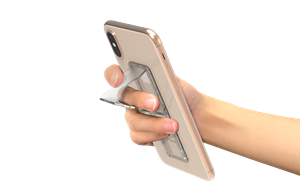 Slim design of KikStik folds flat against the phone allowing for unimpeded wireless charging and easy access in and out of pockets or bags