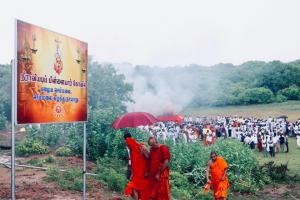 PARIS, FRANCE, September 23, 2019 /EINPresswire.com/ --தமிழர்களின் பண்பாட்டு வழிபாட்டு உரிமையினை புறந்தள்ளி, முல்லைத்தீவு- நீராவியடிப் பிள்ளையார் ஆலய வளாகத்துக்குள் பௌத்த பிக்குவின் உடலம் அத்துமீறி தகனம் செய்யப்பட்டமையானது, சிறிலங்காவின் இனநாயக போக்கையே மீண்டும் வெளிப்படுத்தி நிற்கின்றது என நாடுகடந்த தமிழீழ அரசாங்கத்தின் அரசியில் விவகாரங்களுக்கு அமைச்சு தெரிவித்துள்ளது.
