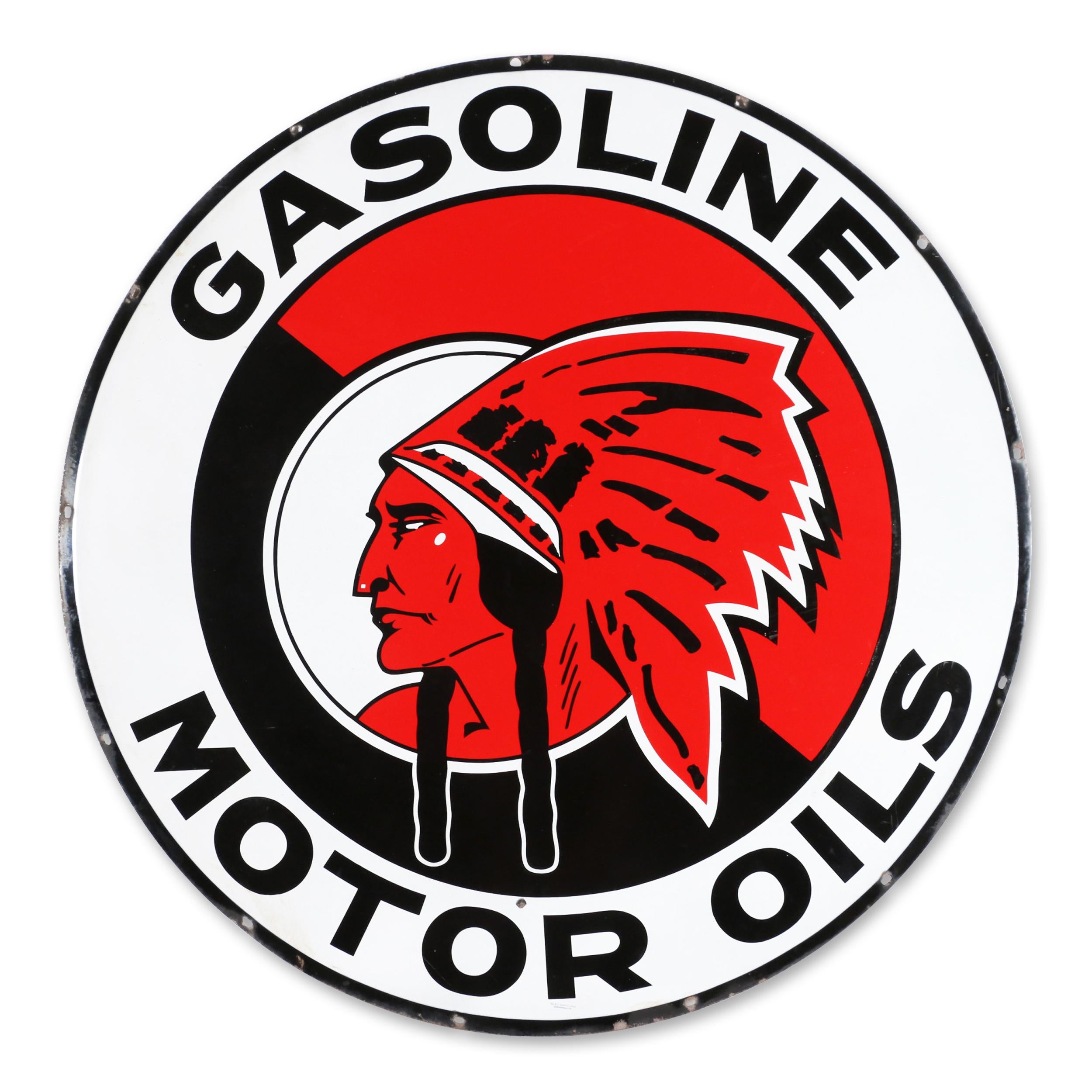 Canadian, late 1930s-era Red Indian dealer sign, five feet in diameter, among the most sought-after in Canadian gas and oil advertising, in excellent condition (CA$8,850).