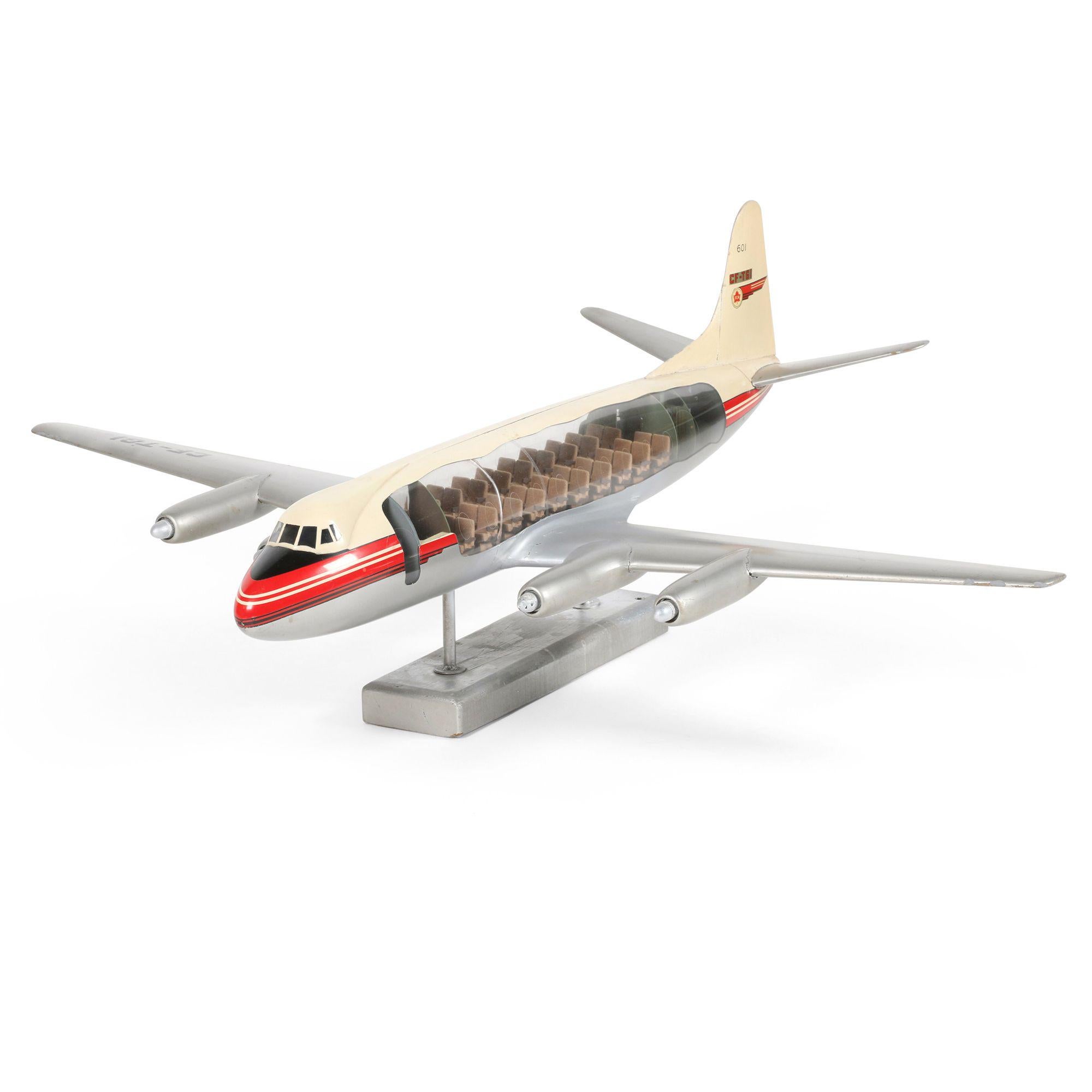 Finally, a large-scale Trans-Canada Viscount cutaway model airplane, 1:24 scale, featuring a transparent acrylic body that allowed someone to view the cabin and cockpit, landed safely for $9,000. The model plane, 47 inches in length, would have been on display in an airport lobby or corporate office, with features that included upholstered seats, luggage and even a rest room.
