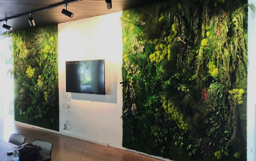 - low carbon footprint: preserved green walls are much more efficient than living walls and plants due to their longevity and low energy consumption such as no water irrigation, specific light, soil infestations, trimming and pruning and periodic maintenance.