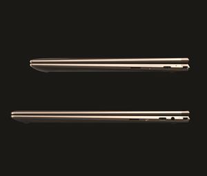 The HP Spectre x360 13 is 13% smaller versus the previous generation, with a system Y dimension reduction of 23.4 mm, the top border reduced by 12 mm, and the bottom border reduced by 15 mm.