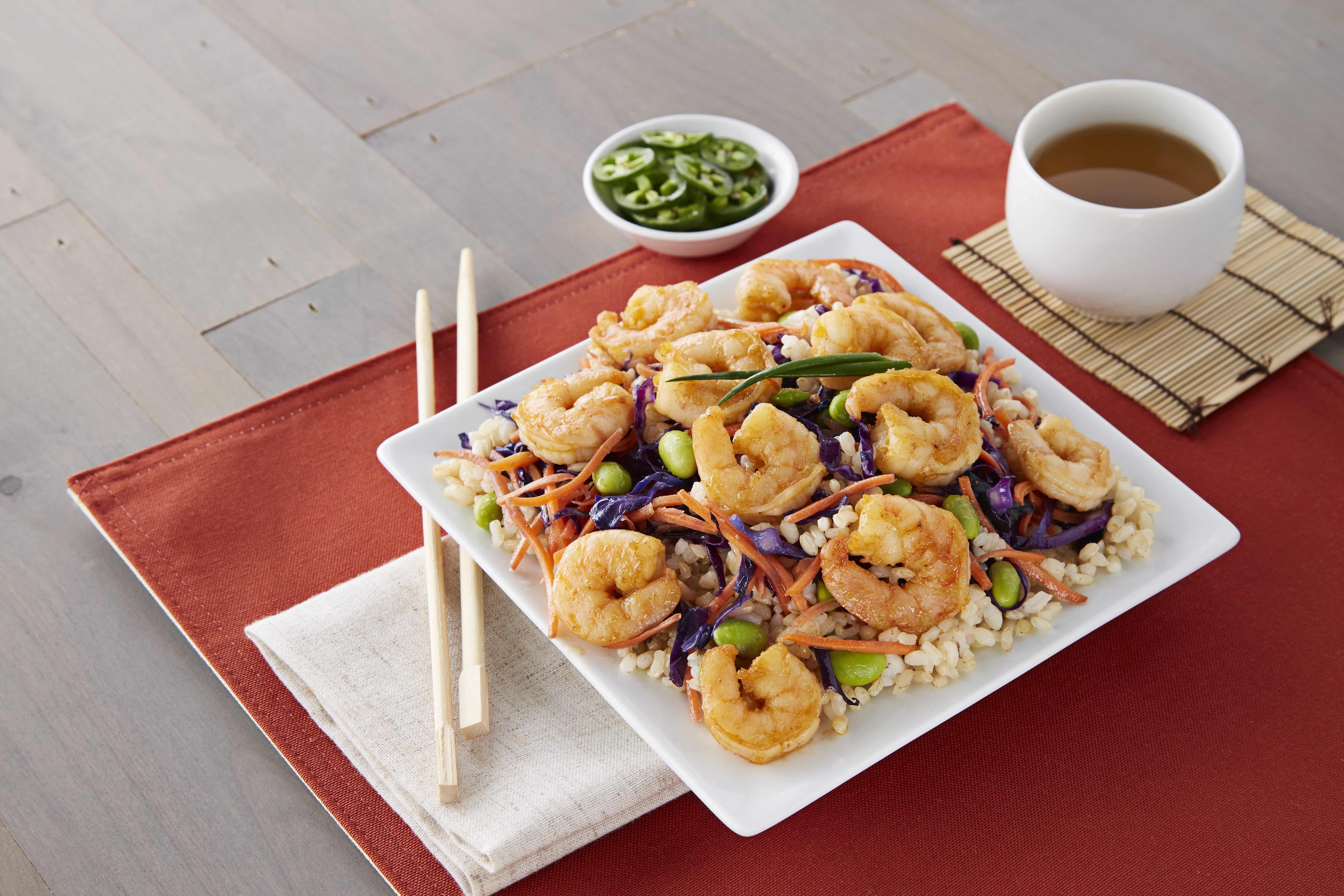 To prepare the seasoned shrimp, simply thaw or cook from frozen until shrimp are opaque, approximately 3-5 minutes. The product lends itself to sautéing, broiling, or grilling and is a perfect addition to rice, pasta, stir-fries, and salads. It can also be prepared as an appetizer with dipping sauce making it a natural fit for bistro snack menus.
