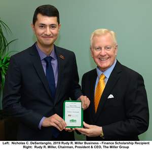 SCOTTSDALE, Ariz., Oct. 25, 2019 (GLOBE NEWSWIRE) -- The Miller Group (TMG) announced it has awarded its twelfth annual Rudy R. Miller Business – Finance Scholarship (RRM Scholarship) to Arizona State University (ASU) senior, Nicholas C. DeSantangilo, who is pursuing a Bachelor of Science in Finance with a minor in Real Estate.