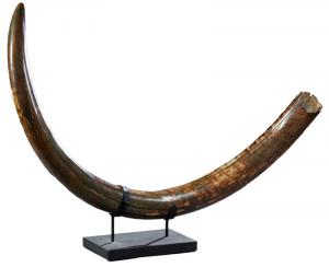 Fossilized woolly mammoth (or mastodon) tusk measuring 93 inches long and 66 inches across from tip to tip, nicely mounted on a steel stand, overall 51 ½ inches tall (est. $10,000-$15,000).