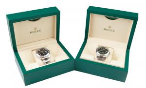 The men’s Rolex watches are being sold by court order and include a Rolex Datejust Oyster Perpetual wristwatch with a black dial and stainless band (est. $5,000-$7,000); and a Rolex Datejust Oyster Perpetual Milgauss wristwatch with a black dial, green sapphire crystal and stainless band (est. $4,000-$8,000). Both come with original invoices and presentation boxes.