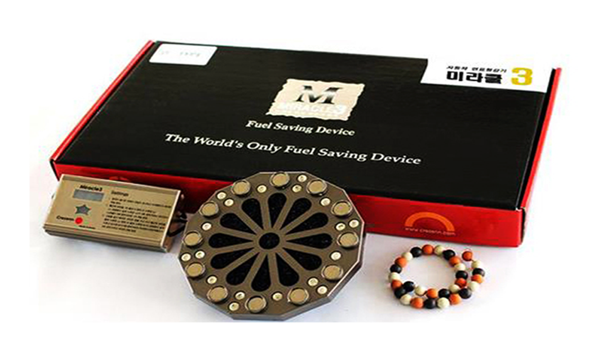 Miracle3, Sometimes Called "Engine Pretreatment Fuel and Exhaust Gas Abatement Device" or "Fuel Saving Device", Miracle 3 Body is Installed in the Air Cleaner and Powered From the Control Box Attached to the Battery, It is a Method of Optimizing the Environment of a Combustion Chamber Using Air, High-tech, Carbon Fiber, Radiation Energy, Far Infrared Rays, Anions, Ceramic Balls, and a Magnetic Field, Suitable for Combustion.