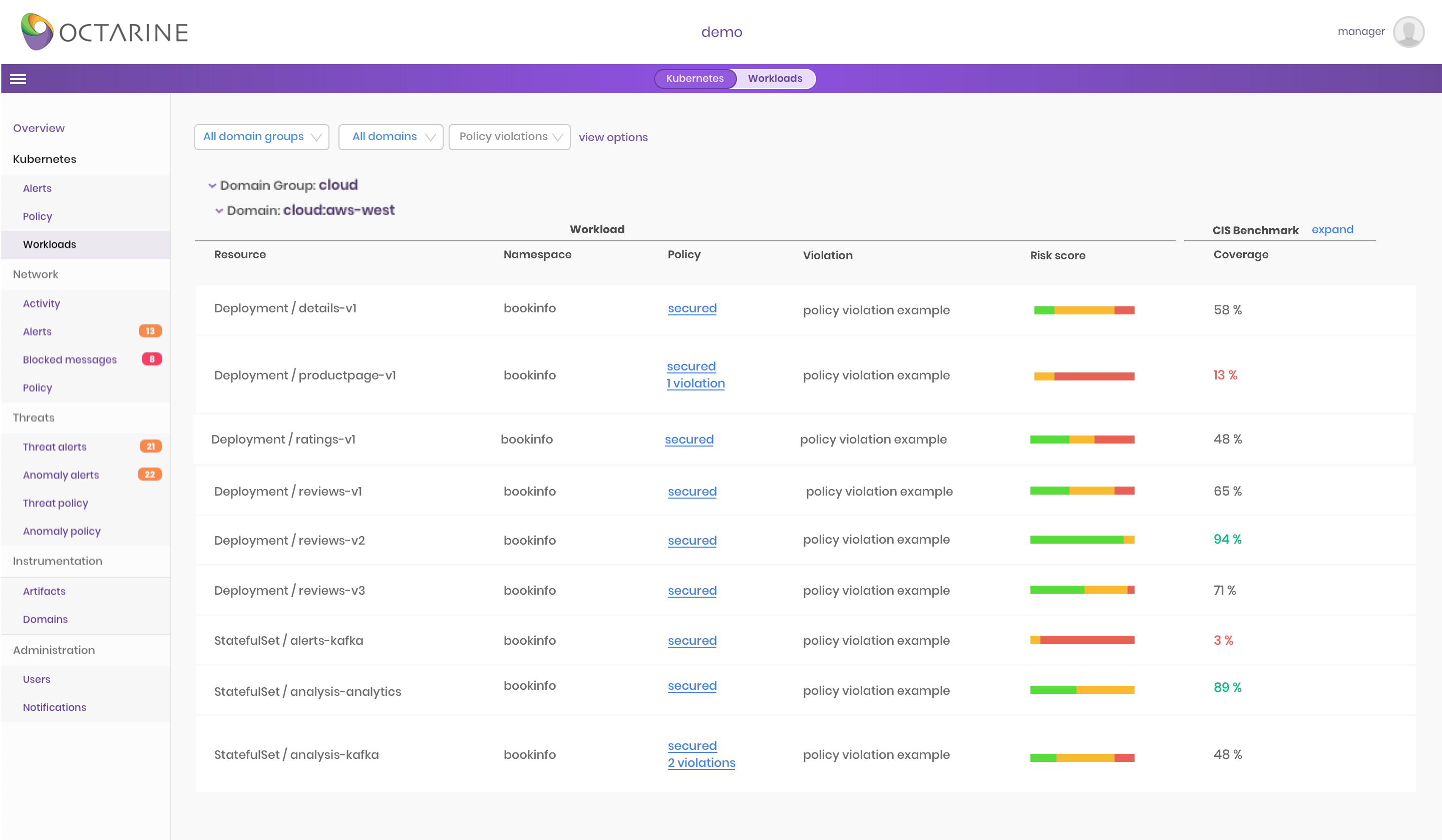 - Octarine Guardrails: Enforce and automate compliance policies based on NIST, CIS, or custom benchmarks to unleash agile delivery to Kubernetes clusters that is safe, secure, and compliant from Day 0, without getting in developments’ way.