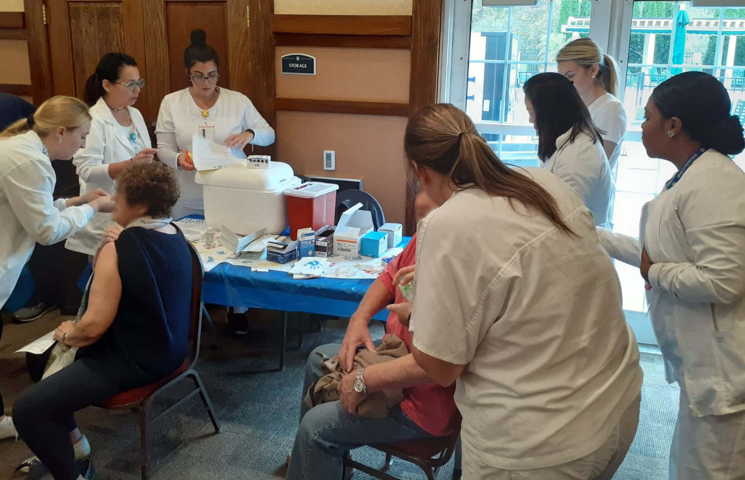 Nursing students participated in two community health initiatives last month. With Professor Elenita Talavera, RN-BC, Berkeley College Practical Nurse students participated in Wanaque Health Center’s Immunization Drive by assisting the Public Health Nurse with vaccinating approximately 200 Wanaque residents. The graduating BSN class participated in the Philippine Nurses Association of Bergen County’s Health Fair in Bergenfield, NJ, under the supervision of Professor Christopher de la Victoria, CEN, CMSRN. With the member nurses of the organization, they administered vaccinations, provided preventive teachings, and assisted the volunteer medical providers in assessing and treating consumers who sought free medical care. “These positive student experiences support our community public health offices to help promote good health and well-being as well as prevent disease,” added Dr. Genuino.