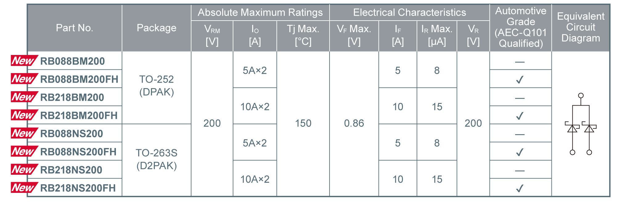 ROHM's New 200V Ultra-low IR Schottky Barrier Diodes