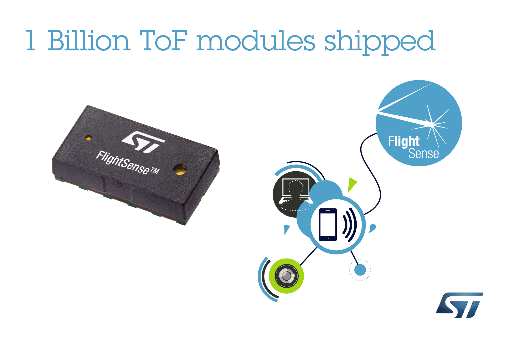 Geneva, November 26, 2019 – STMicroelectronics (NYSE: STM), a global semiconductor leader serving customers across the spectrum of electronics applications, has announced the shipment of its 1 billionth Time-of-Flight (ToF) module.