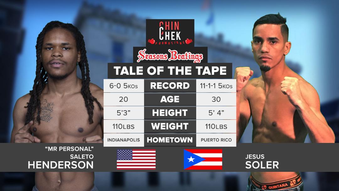 Indy's Saleto "Mr. Personal" Henderson (6-0) v. Jesus "Chiquito" Soler (11-1-1)