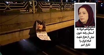Dec 24, 2019-Tabriz-Monajem Bridge; picture of Maryam Rajavi hanging with her words echoing the cry of those fallen for freddom during November uprising.