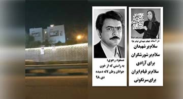 The banners read, “Hail to the martyrs from Shahriar to Karaj, Sirjan, Behbahan, Shiraz, Marivan, Khorramshahr, Tehran and other cities,” “Flowers have blossomed from the blood of the martyrs.” “I hail the proud martyrs of Iran uprising,” “Hail to rebels for freedom, hail to Iran uprising for freedom,” “The roaring river of the martyrs’ blood guarantees our people’s victory,” “The army of the unemployed and hungry will not rest,” and “On the eve of 40th day memorial of the martyrs, they are alive.”