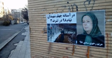 Dec 24, 2019-Tehran-Sepehr 3 street, picture of Mrs. Maryam Rajavi quoting her, “On the eve of 40th day memorial of the martyrs, they are alive.”
