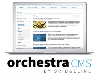 The bank has been a customer of Bridgeline Digital Inc. since 2011 with the objective to align their digital processes using Salesforce and OrchestraCMS. The bank has selected OrchestraCMS to power the corporate intranet and customer portal delivering industry leading, targeted research that complies with regional regulations, while decreasing total cost of ownership by focusing on technology re-use rather than building costly and customized solutions. The bank leverages real-time insights from OrchestraCMS to offer consistent client experiences with personalized, targeted content that generates key client metrics.