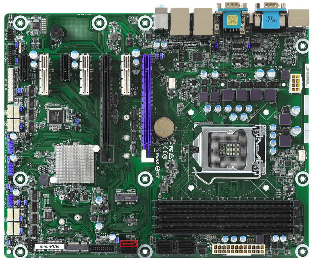 The new RUBY-D811-Q370 industrial ATX form factor motherboard provides optimized computing performance and power consumption by utilizing Intel 8th/9th Generation Core i3/i5/i7/i9 processors (formerly Coffee Lake S platform) with as many as 8 cores in the LGA 1151 socket as well as the latest Intel Gen 9 graphics engine. Other features include: support for Dual Channel DDR4 Non-ECC Long-DIMM 2400/2666 MHz up to 128GB; 6 x USB 3.1 (4 on rear I/O), 6 x USB 2.0, 6 x SATA III, 3 x configurable PCIe 3.0 slots (1 x PCIe x16 or 2 x PCIe x8 signal or 1 x PCIe x8 and 2 x PCIe x4), 3 x PCIe 3.0 x4, 2 x PCIe 3.0 x1 and 1 x mini-PCIe; 1 x M.2 key E 2230 for wireless and 1 x M.2 key M 2242/2260/2280 for SSD; dual Gigabit Ethernet, 10 x COM ports; triple independent displays among dual DP (4K resolution), 1 x HDMI (4k resolution) and 1 x VGA (resolution up to 1920x1200) available in both clone and extended modes; and ATX power input.