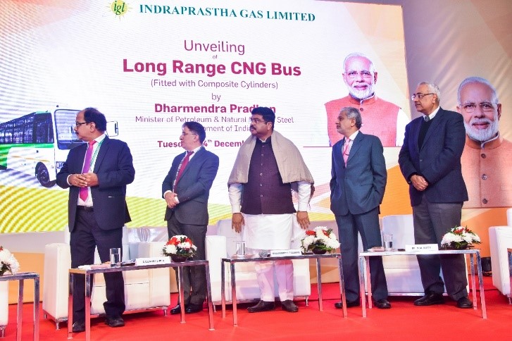 NEW DELHI, India, Jan. 13, 2020 (GLOBE NEWSWIRE) -- Mr. Dharmendra Pradhan, India’s Minister for Petroleum and Natural Gas, launched India’s first long distance compressed natural gas (CNG) bus on December 24, 2019 under a strategic program led by Indraprastha Gas Limited (IGL), the largest CNG distribution company in India. The launch ushers in CNG as the fuel of choice for long distance transportation in India. The Honorable Minister speaking on the occasion complimented Agility Fuel Solutions and urged the Indian automotive and fleet industry to implement long distance travel solutions with CNG. Present at the launch were Dr. M.M. Kutty, Secretary, Ministry of Petroleum & Natural Gas, Govt. of India, Mr. Gajendra Singh, Director, GAIL, Mr. Ranganathan, MD, IGL and Mr. Manoj Chugh, President, Mahindra & Mahindra Ltd.