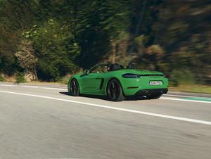 The mid-engine sports cars are fitted with 20-inch light-alloy wheels painted in satin black and high-performance summer tires (235/35 ZR 20 at the front and 265/35 ZR 20 at the rear). In light of the increased power, the brake system has been enhanced compared to the previous 718 GTS models. The cross-drilled cast-iron front rotors now measure 350 millimetres in diameter (up from 330 mm previously) and are equipped with red six-piston calipers, while the rear rotor size has been increased to 330 mm. The Porsche Ceramic Composite Brake (PCCB) system is available as an option.