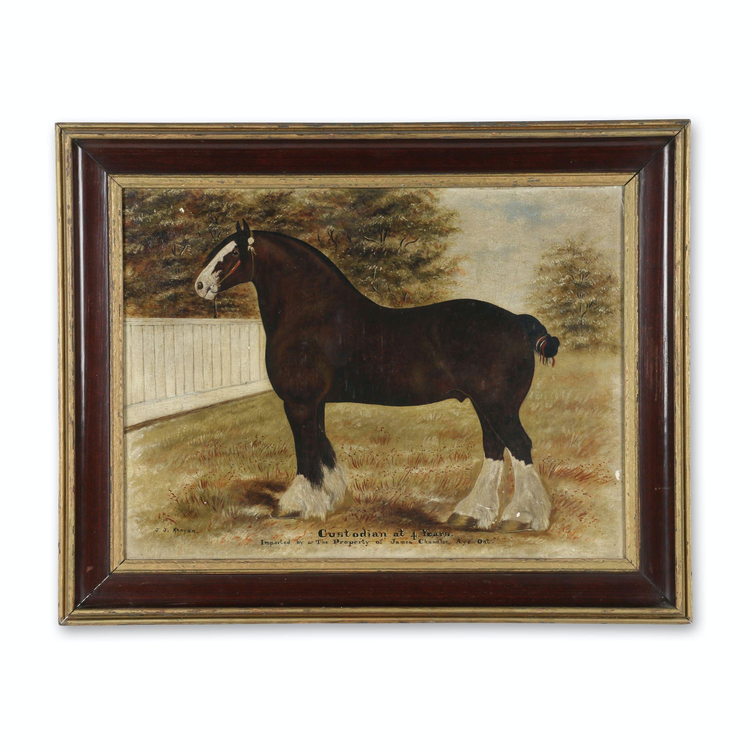 The original artwork category is plentiful and will be led by an oil on canvas painting of a horse by the Canadian photographer and painter J. J. Kenyon (Oxford County, 1862-1937), 23 ½ inches by 17 ½ inches (sight) (est. $4,000-$6,000); and a well-documented, two-sided oil on canvas folk art rendering of a young girl and her spaniel dog with a mother and child (verso), nicely housed in a wood frame and painted by an unidentified Canadian artist sometime in the 1850s, 18 ½ inches by 21 inches (sight) (est. $3,500-$5,000).