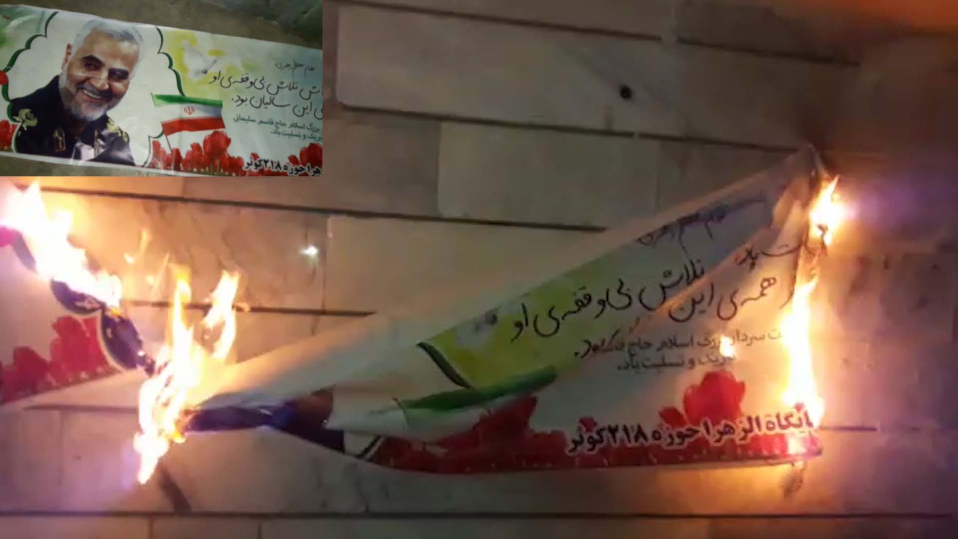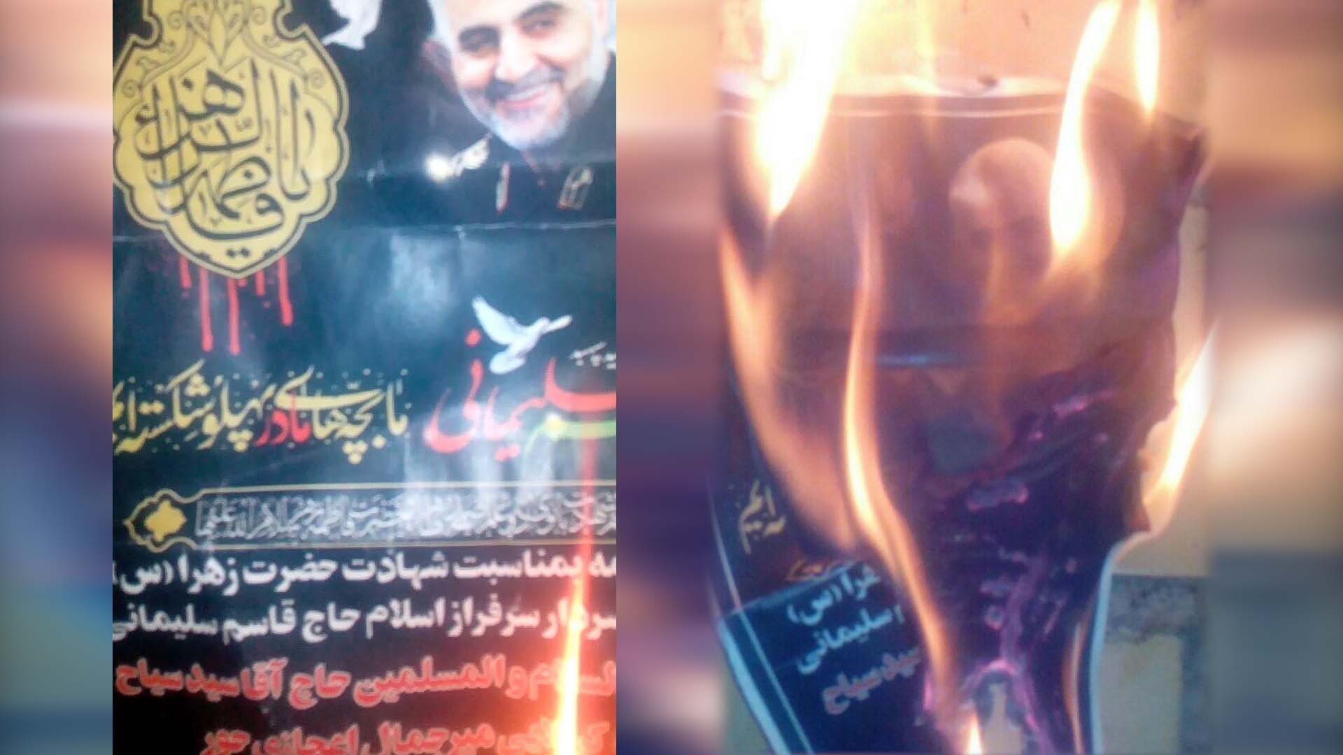 Iran: Torching Large Poster of Soleimani on Tehran’s Niayesh Expressway
