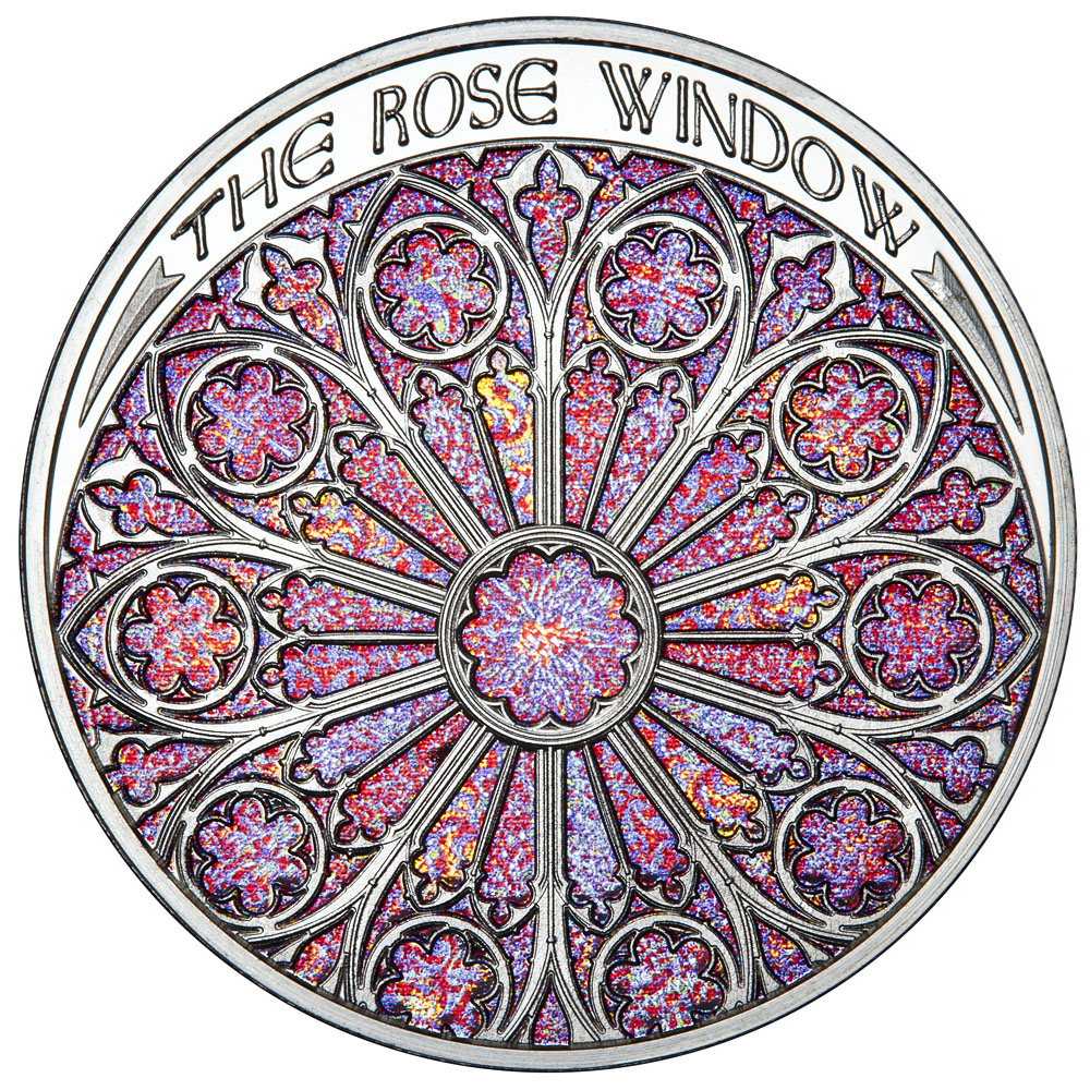 The exclusive Colored Light Collection from Osborne Mint defines beauty and art in collectible 1 oz. rounds of .999 true silver. What makes these rounds most unique is the permanent colorization process that was adapted to emulate the sun’s light traveling through stained glass. The iridescences achieved by manipulating and in some cases removing all color allow the brilliance of the silver to shine through the print. The depth in the appearance and distinction of these “panes of glass” remarkably replicates the actual stained glass windows from which they were modeled. These rounds are not just recreations of existing stained glass windows but are unique designs inspired by stained glass pieces from around the globe.