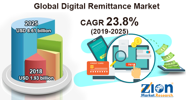 Global Digital Remittance Market to Hit Around USD 8.61 Billion By 2025 - Zion Market Research