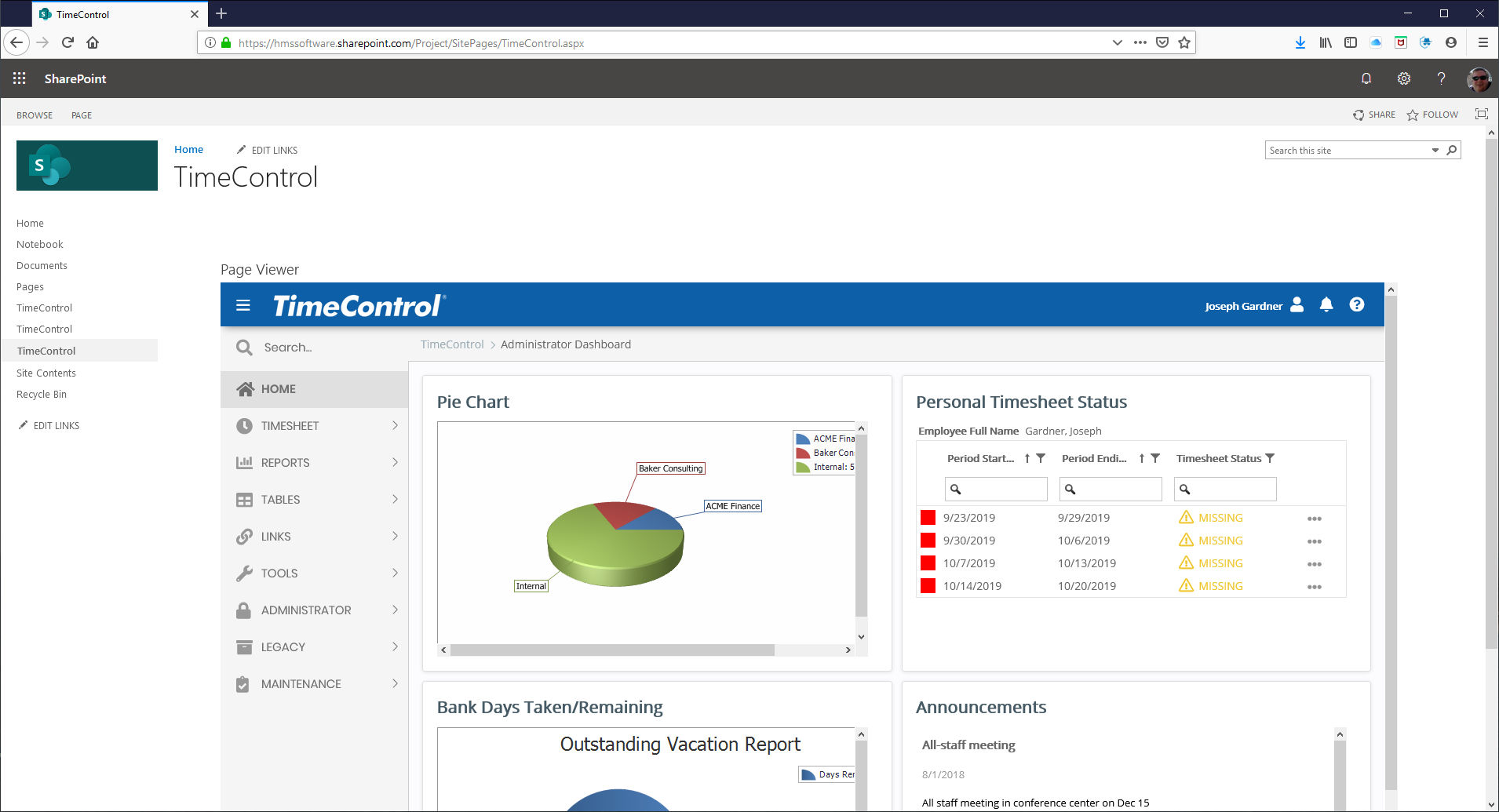 Display your TimeControl data right in your SharePoint Dashboard