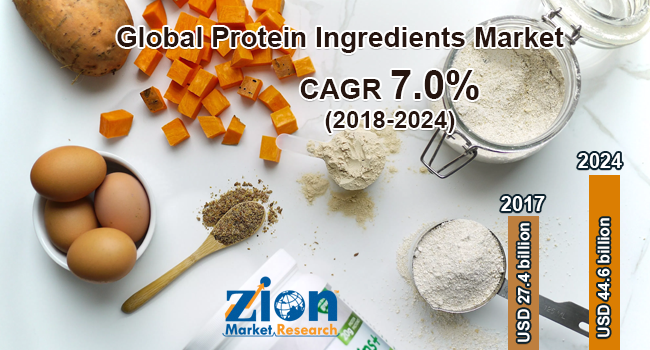 Global Protein Ingredients Market expected to reach USD 44.6 billion in 2024, growing at a CAGR of slightly above 7.0% between 2018 and 2024