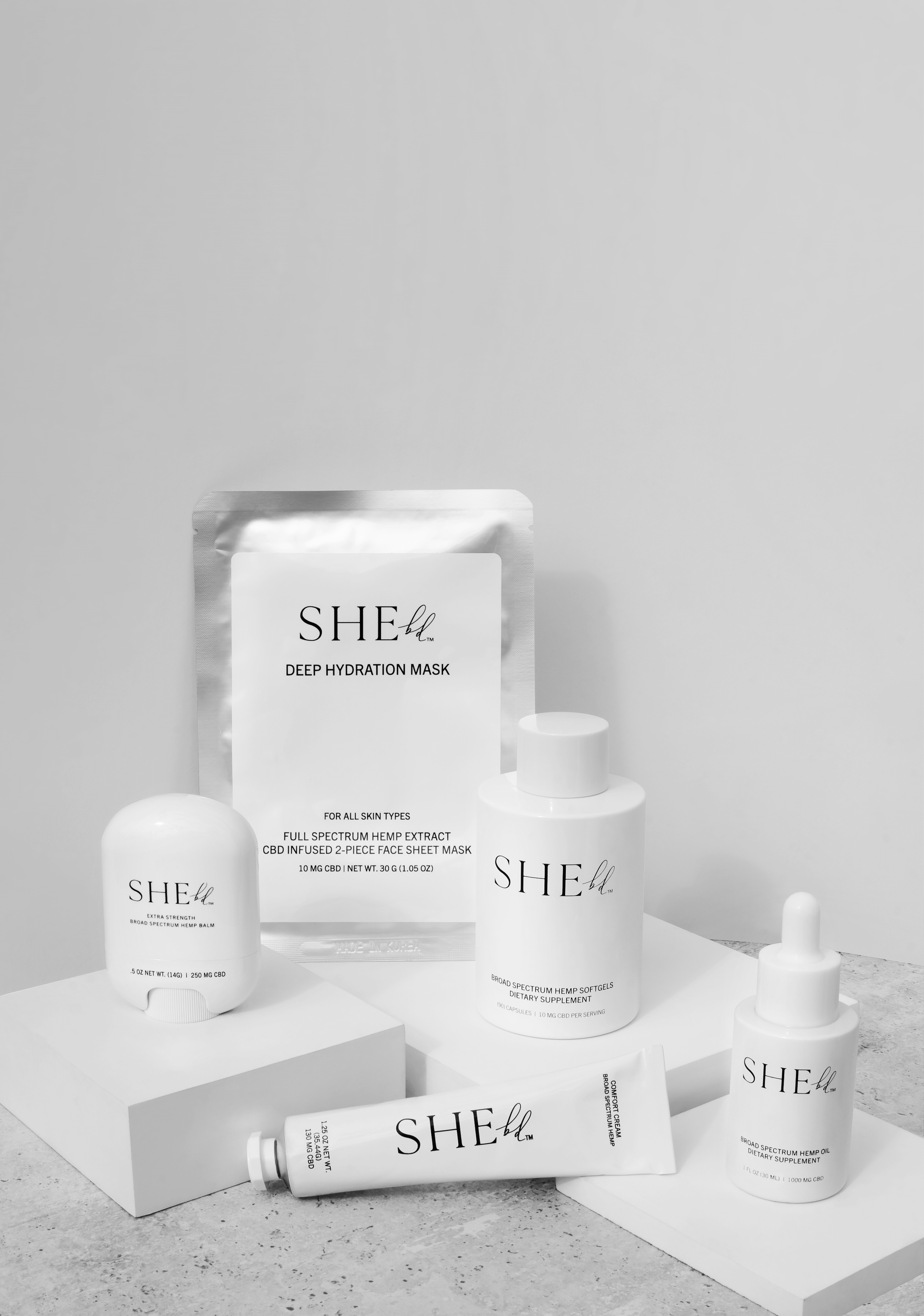 SHEbd™ products are all broad spectrum, THC-free, and include:
