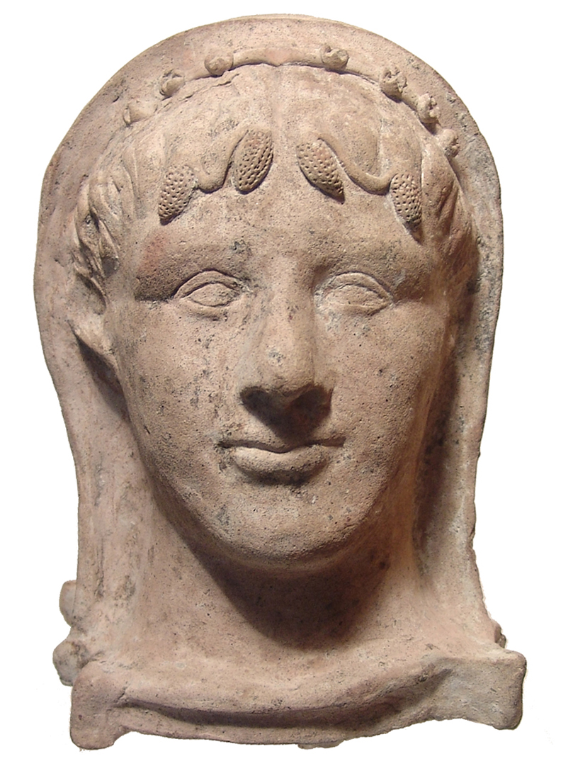 The Etruscan terracotta head of a man, 10 inches tall, is an outstanding example. He is veiled and is wearing a narrow diadem decorated with rosettes. Four small pinecones adorn his forehead and his features are wonderfully modeled in high relief, his hair short and well defined. Last acquired thru Sotheby’s, the piece should garner $4,000-$5,500.