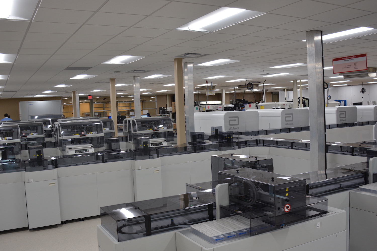 The track system in San Antonio includes the Abbott Alinity s system, which was tested at QualTex Laboratories during its development. The Alinity s system can run 600 tests per hour and is more compact than most previous viral disease testing devices.